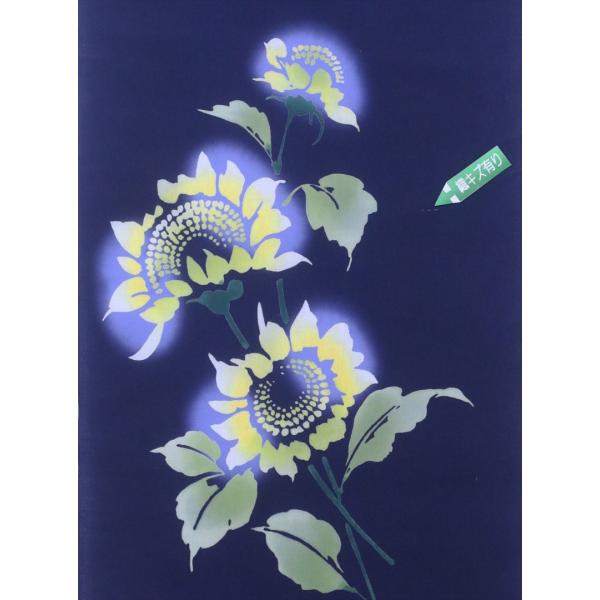 浴衣 反物 NO.327 濃紺地・ヒマワリ柄【訳アリ】