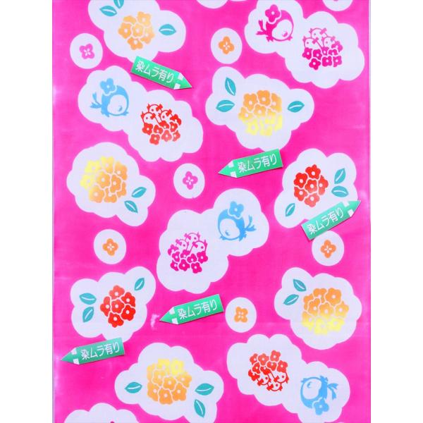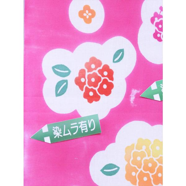 注染の浴衣はにじみを利用した独特の染色でありますので、多少の染めムラはご容赦ください。地色は濃いピンク地です。