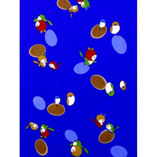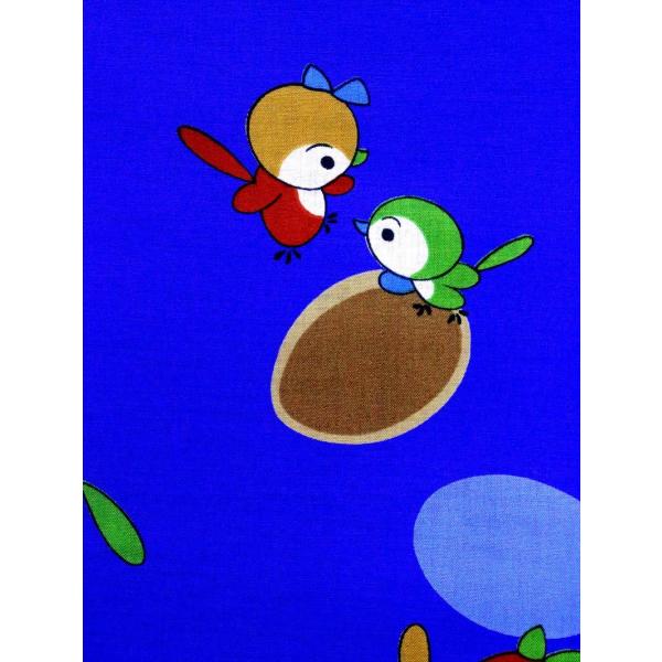 訳あり 難あり こども浴衣反物 3.8m No.713 ブルー地 すずめ 38cm×3.8m 1丈 レトロ 生地