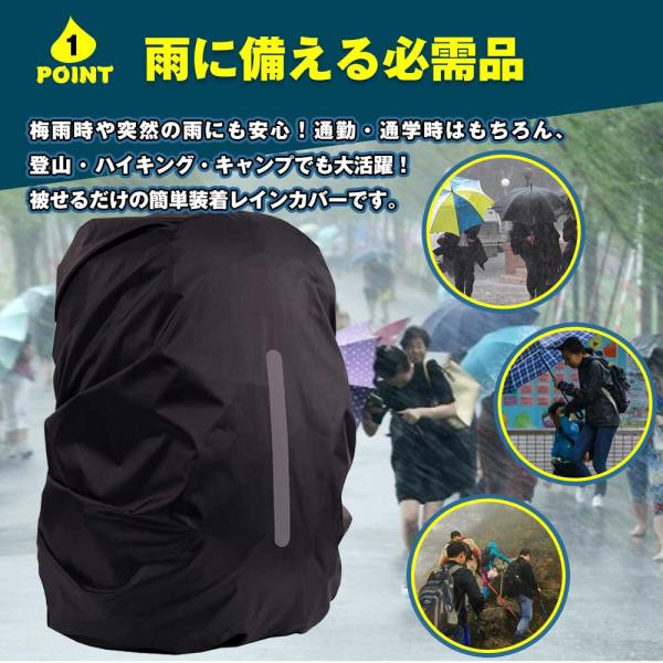 リュックカバー レインカバー 雨用 防水 撥水 反射材 十字ベルト 軽量 風飛び防止 雨よけ 梅雨対策 通勤 通学 登山 自転車 アウトドア 男女兼用 収納袋付き