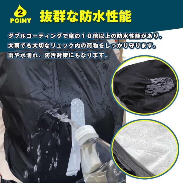 ●ダブルコーティングで傘の10倍以上の防水性能があり、大雨でも大切なリュック内の荷物をしっかり守ります。雨や水濡れ、防汚対策にもなります。