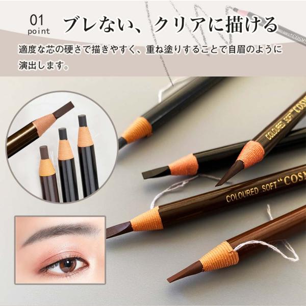 アイブロウ ペンシル 鉛筆 お得3点セット 消えない 落ちない 描きやすい 長持ち 防水 ピールオフ式 初心者 眉ペンシル 眉ティント アイメイク 女性 男性
