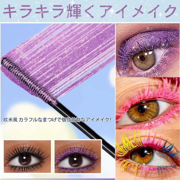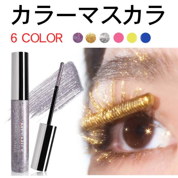 カラーマスカラ キラキラ ロング 防水 落ちない ウォータープルーフ ラメ 極細 速乾 滲みにくい コスプレ ハロウィン メイク 6カラー