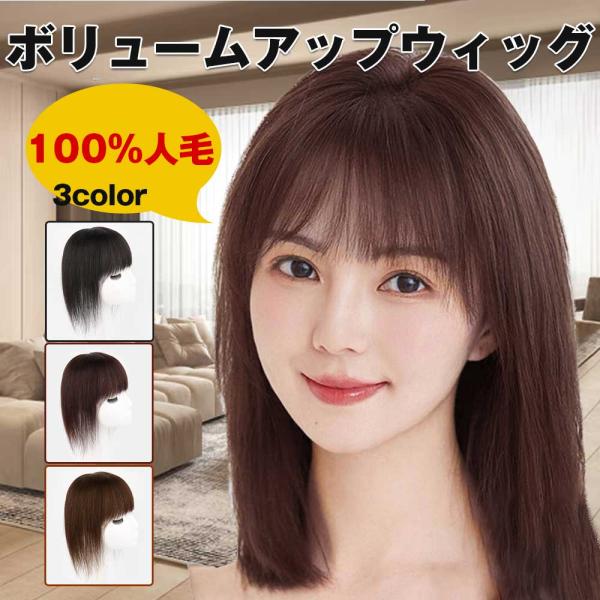 ヘアピース 人毛100% 頭頂部 ウィッグ 自然 ミディアム 30cm ストレート ボリュームアップ 薄毛 脱毛 白髪 部分ウィッグ トップウィッグ かつら つけ毛