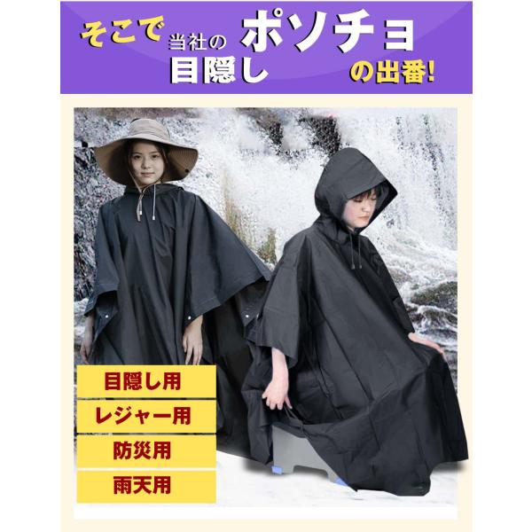 目隠し、雨除け、防寒、簡易なレジャーシートにもなるポンチョ