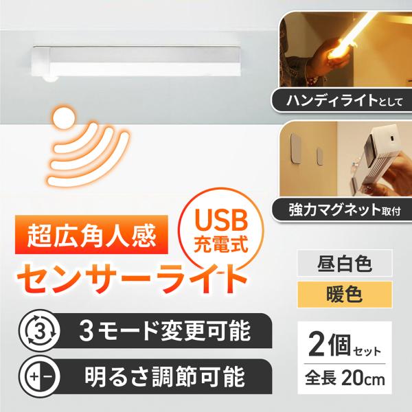 センサーライト 人感センサーライト 室内 充電式 2個セット 2本セット LEDライト 玄関 廊下 トイレ USB マグネット 足元灯