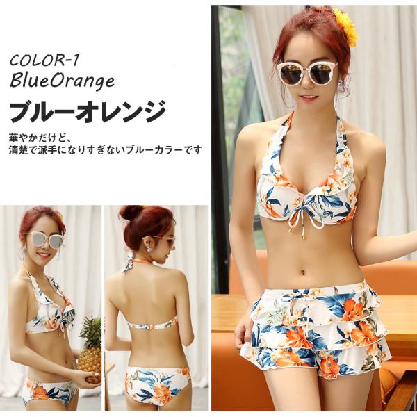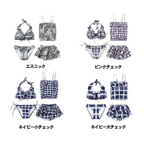 水着 レディース タンキニ 体型カバー ビキニ 花柄 パステル柄 4点セット フリルビキニ/S/M/L トレンド