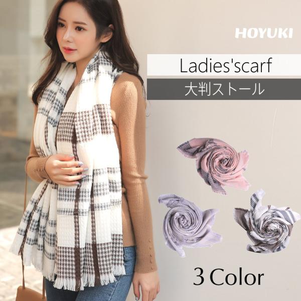 マフラー ストール 幅広 レディース 大きい チェック 学生 冬 暖かい 幅広マフラー 秋 ネイビー グレー ホワイト 選べる3色 幅広ストール ショール 防寒