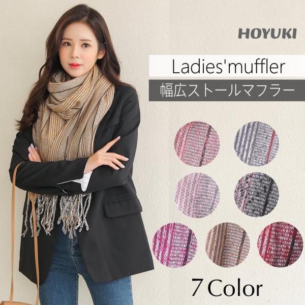 マフラー ストール 幅広 レディース 大きい チェック 学生 冬 暖かい 幅広マフラー 秋 ネイビー グレー ホワイト 選べる7色 幅広ストール ショール 防寒