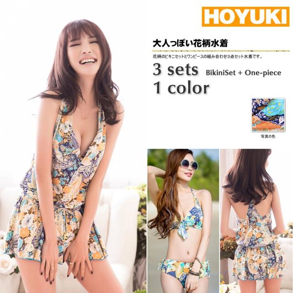 水着 レディース 体型カバー レディース 3点セット ビキニ水着 花柄 体型カバー 体型カバー 大きいサイズあり