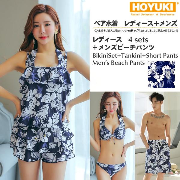水着 ペア水着 まとめ買いでお得!水着 メンズ トランクス+水着 送料無料 ホユキ カップルお揃い S/M/L/LL/3L ビーチパンツ 4点セット