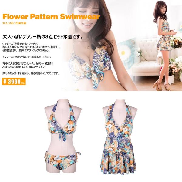 水着 レディース 体型カバー レディース 3点セット ビキニ水着 花柄 体型カバー 体型カバー 大きいサイズあり