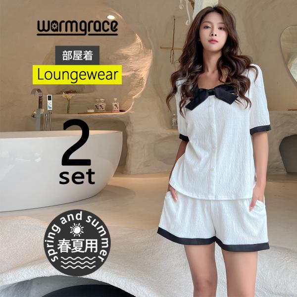 【ルームウェア限定!半額50%OFF】ルームウェア レディース 半袖 ショートパンツ パジャマ キャンディー・スリーブ 上下セット 短パン 無地 シンプル