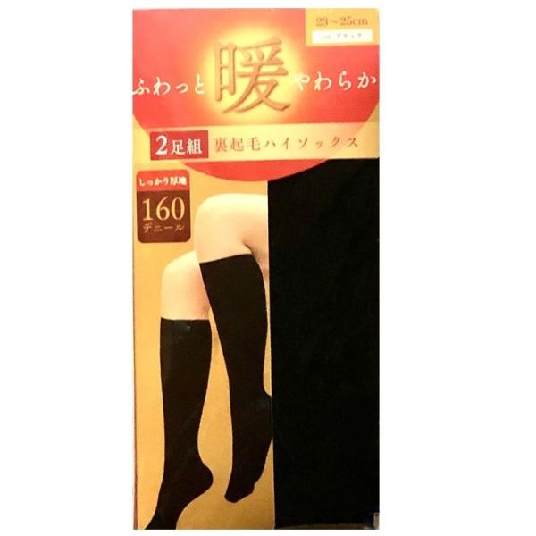 2足組 レディース あったか 裏起毛 ハイソックス 160デニール 靴下 暖かい カラー:ブラック