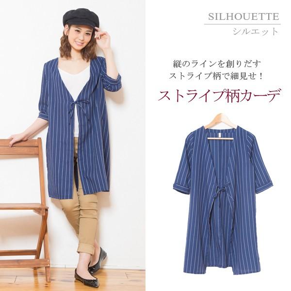 ストライプ柄 ロングカーディガン トッパー メール便送料無料