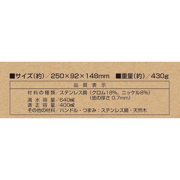 満水容量:(約)640ml、適正容量:(約)400ml(コーヒー1~2杯分)
