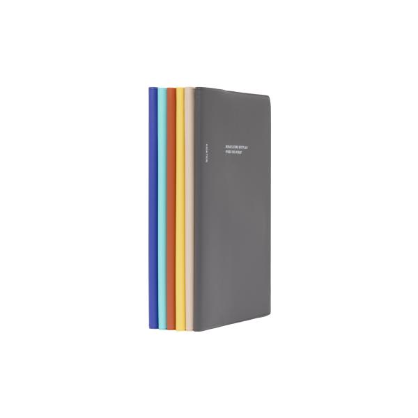 カジュアルすぎない雰囲気と、シンプルですっきりとしたデザインが印象的なダイアリーです。落ち着いた意匠で飽きずにお使いいただける、ベーシックな1冊です。