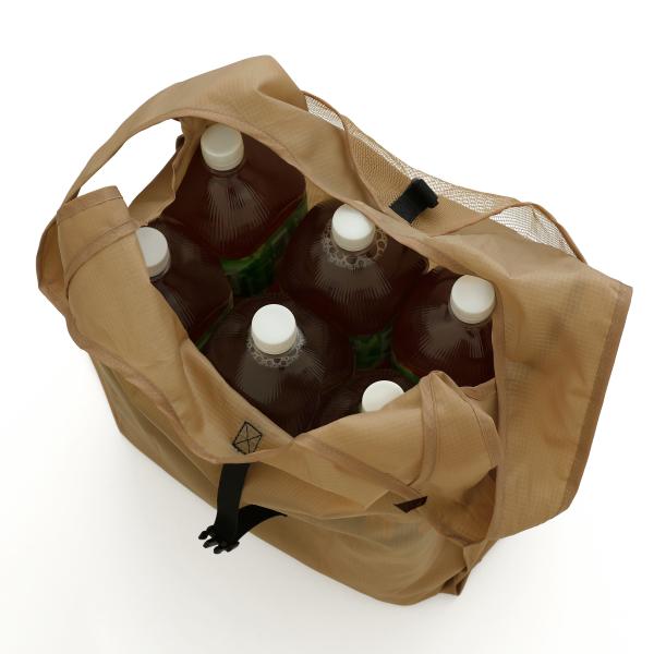 お買い物時のエコバッグや、旅行時のサブバッグとしても活躍するnahe(ネーエ)のショッパー。幅広の持ち手、大きなメッシュポケット、バッグの口を留めるバックルを備え、使わない時はくるくると丸めてコンパクトに収納が可能。Lサイズは2Lのペットボトルが6本入るサイズ感。2026年限定カラーのライトブルーが登場です。