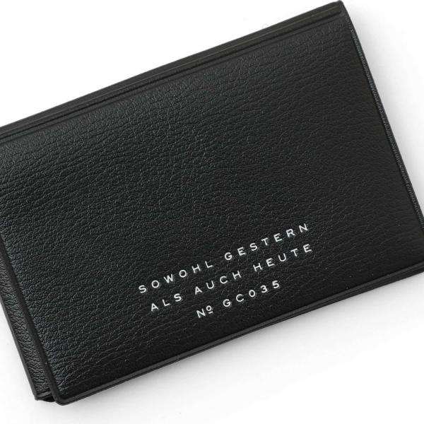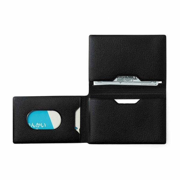 白の箔押しでワンポイントを施したパス&カードケースです。素材には軽量で汚れや水濡れに強いPVCを使用しており、ソフトな手触りと落ち着いた印象のカラーリングが魅力です。見開き両面のポケットには名刺やカードを、窓穴付きの折り返しポケットには定期を収納でき、スッキリと一つにまとめて持ち歩けます。