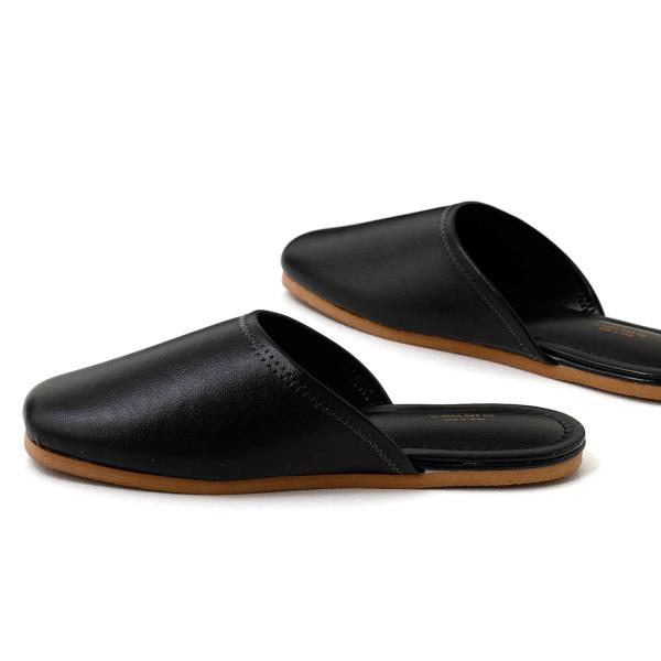 CLASKA Gallery & Shop "DO" オリジナル「BANK」シリーズのシンプルなスリッパです。ホテルなどの業務用スリッパを専門に製造している工場で作られており、実用性・耐久性に優れています。ソールはスニーカーにも使われる天然ゴム入りスポンジで弾力があり、滑り止めもしっかりしています。表地は艶のある合成皮革でお手入れが簡単なのも嬉しいポイント。自宅用としてはもちろん、参観日などのお子様の学校行事に持っていくスリッパとしてもおすすめの一足です。