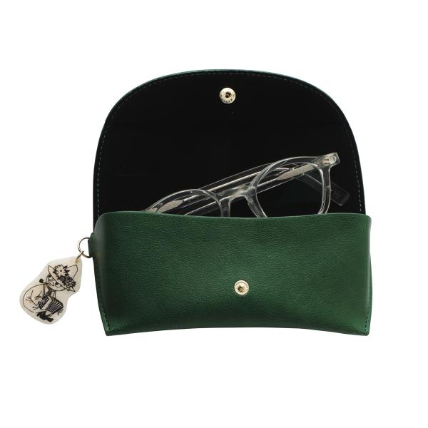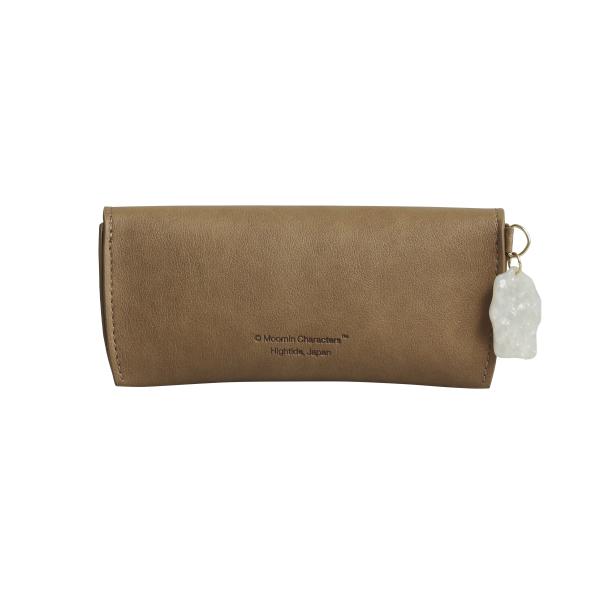 キャラクターのチャームがワンポイントになったメガネケース。シボ感のあるPU(ポリウレタン)素材には素押しが施されており、上品で落ち着いた雰囲気に仕立てています。内側には、眼鏡を固定し携帯時の衝撃を和らげるノーズブリッジ付き。リトルミイ、ムーミントロール、スナフキン、ニョロニョロ、それぞれのキャラクターカラーを用いた4色展開です。ムーミントロールには、“アングリームーミン”として人気の怒った表情を採用しています。