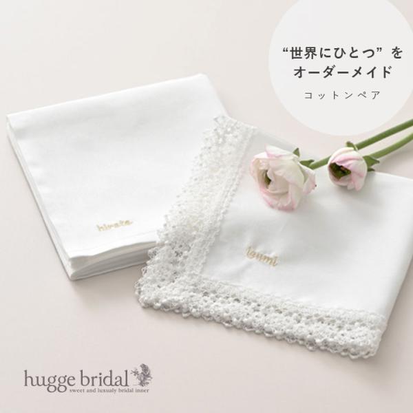 刺繍のフォントとカラーが選べる! オーダー 名入れ ハンカチ ペア レース&ノンレース 綿 コットン 100% オリジナル イニシャル 白 結婚式 ギフト プレゼント