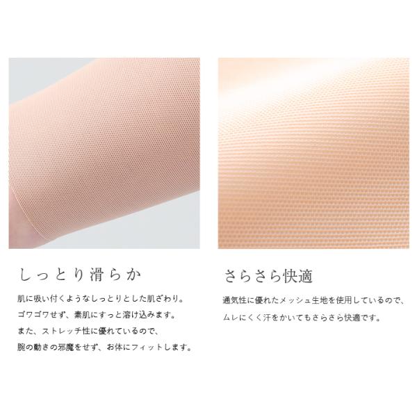 「二の腕のぷるぷる」や、「脇下のたるみ」をスッキリ引き締め、「腕や肩のシミ・ソバカス」をカバーするアームシェイプインナー。