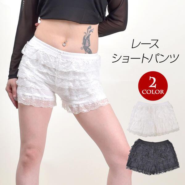 ショートパンツ インナーパンツ 見せパン ドロワーズ ペチパンツ ストレッチ素材 フリル 1分丈 ウエストゴム バレエコア MA21730 [M便 1/2]