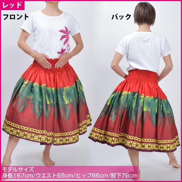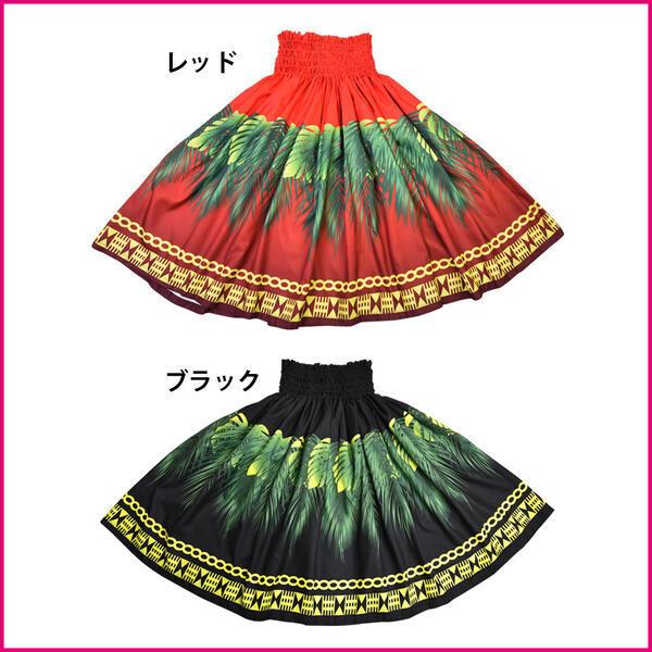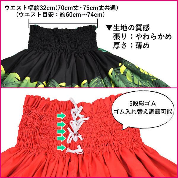 フラダンス衣装 シングルパウスカート ダンス 衣装 フラ シングル レディース 綿混 スカート ブラック レッド/70cm丈-73cm丈-76cm丈 SC43G25