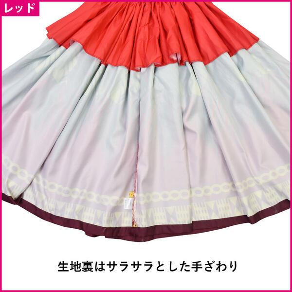 フラダンス衣装 シングルパウスカート5本ゴム JB79121 レディース グラデーション モンステラ 裏地なし レッド ブラック 70cm丈-75cm丈-フリー