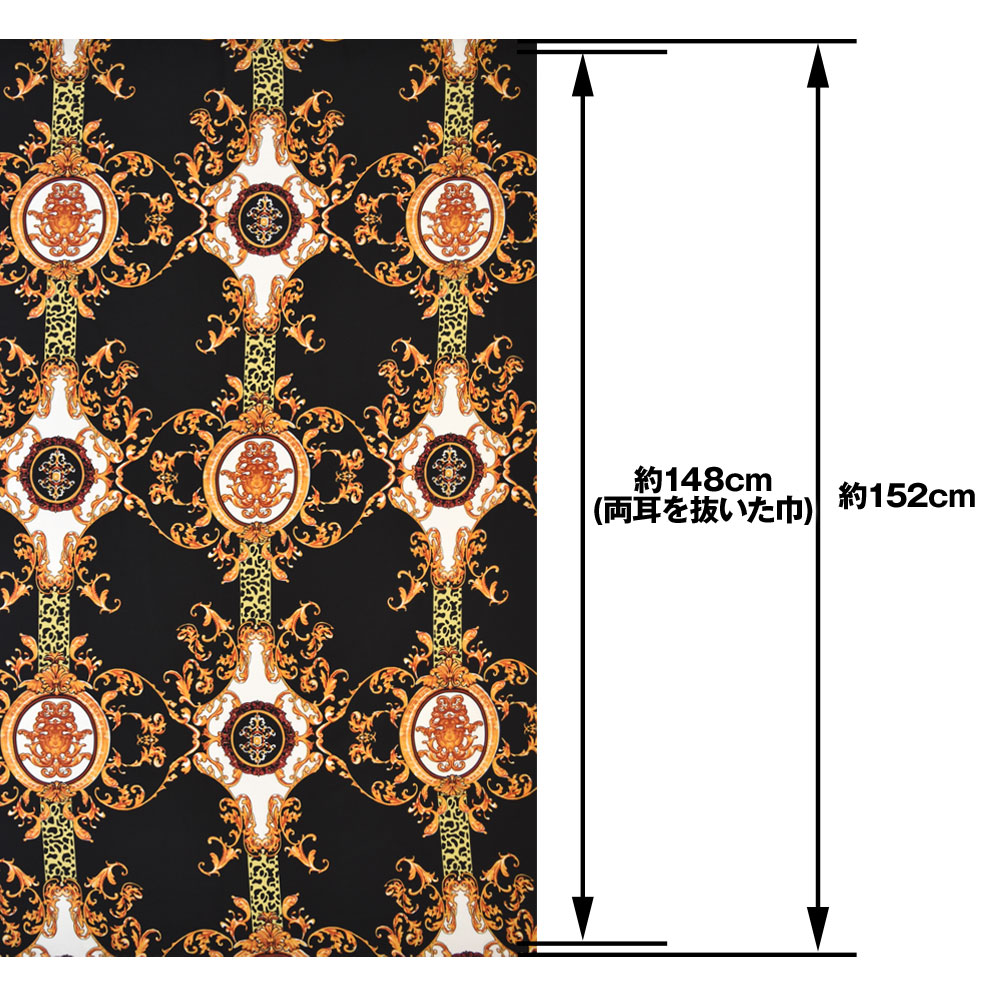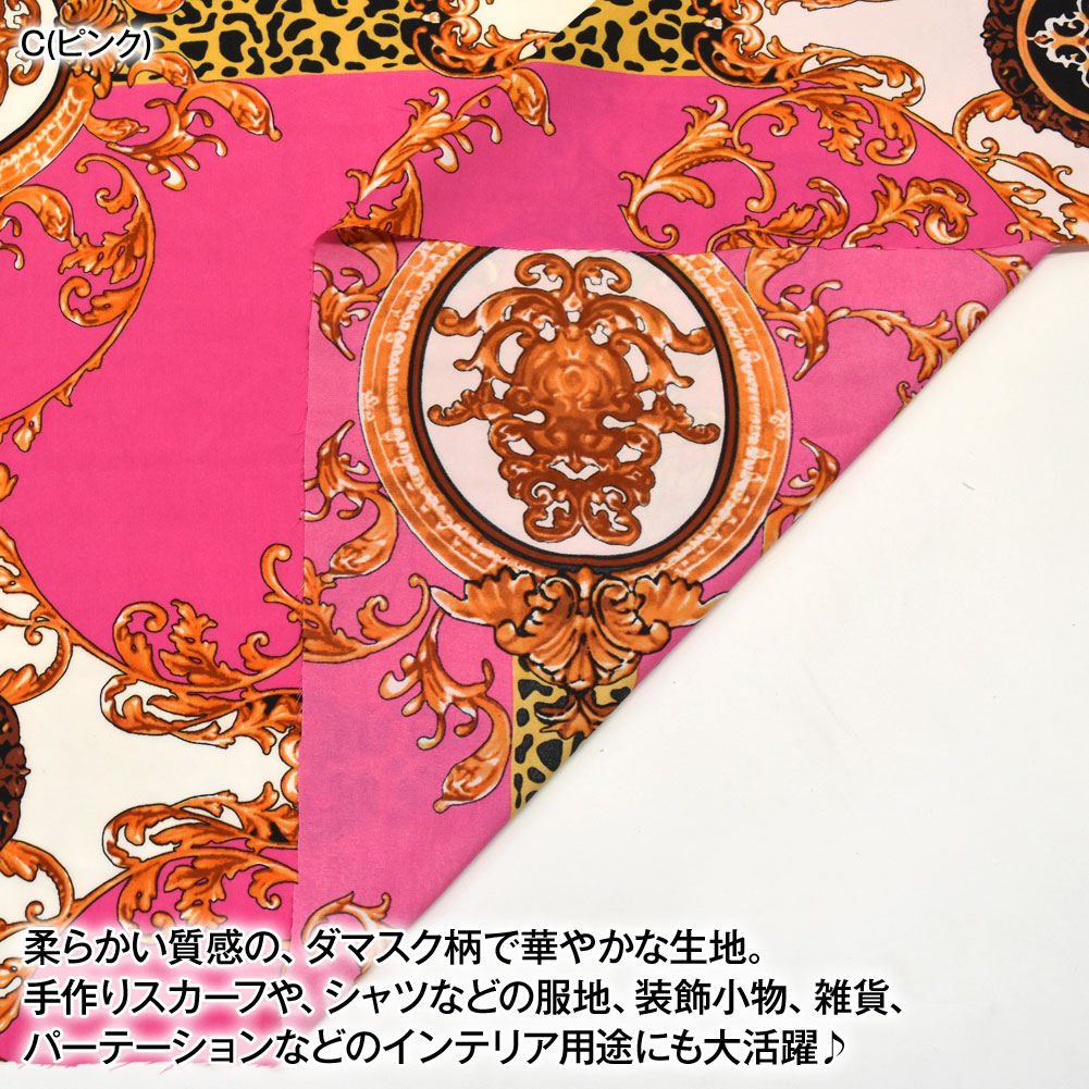 生地 W巾 ダマスク柄 生地(約152cm巾x50cmカット済) 布地 服地 柄 総柄 プリント生地 小物生地 衣装生地 コスチューム 柄生地 [M便 1/6] LF50-212C3