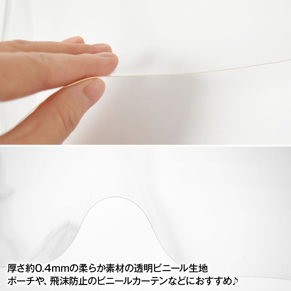 透明ビニール生地 (約135cm巾x50cmカット済) (厚さ約0.4mm) クリア 厚手 w巾 生地 ハンドメイド ビニール テーブルクロス パーティション L50-310R3 [M便 2/3]