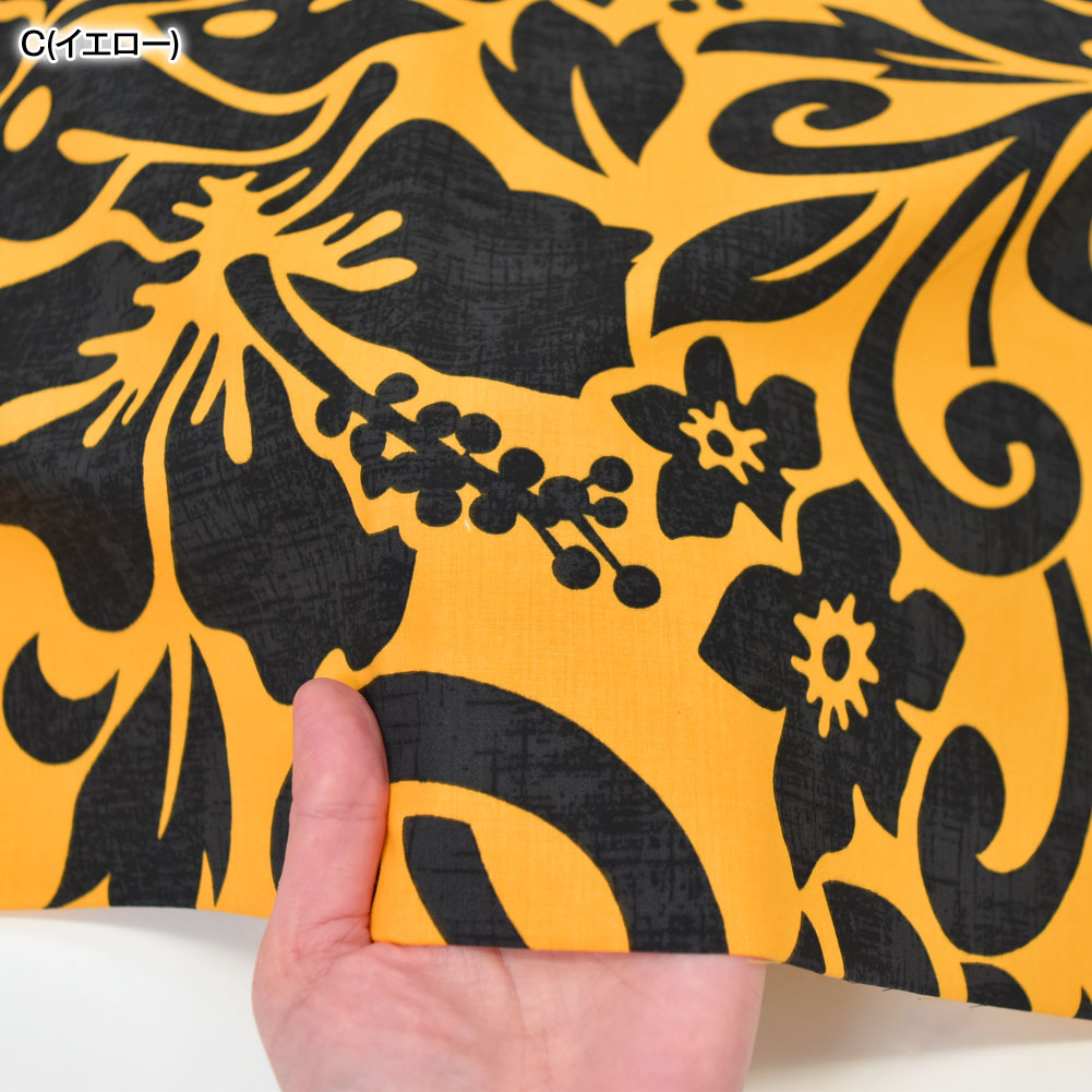 生地 ハワイ柄 ハワイアン柄生地(約113cm巾x1mカット済) 布 柄生地 ハワイアンプリント生地 パウスカート生地 服地 インテリア生地 LET100-31KL17 [M便 1/2]