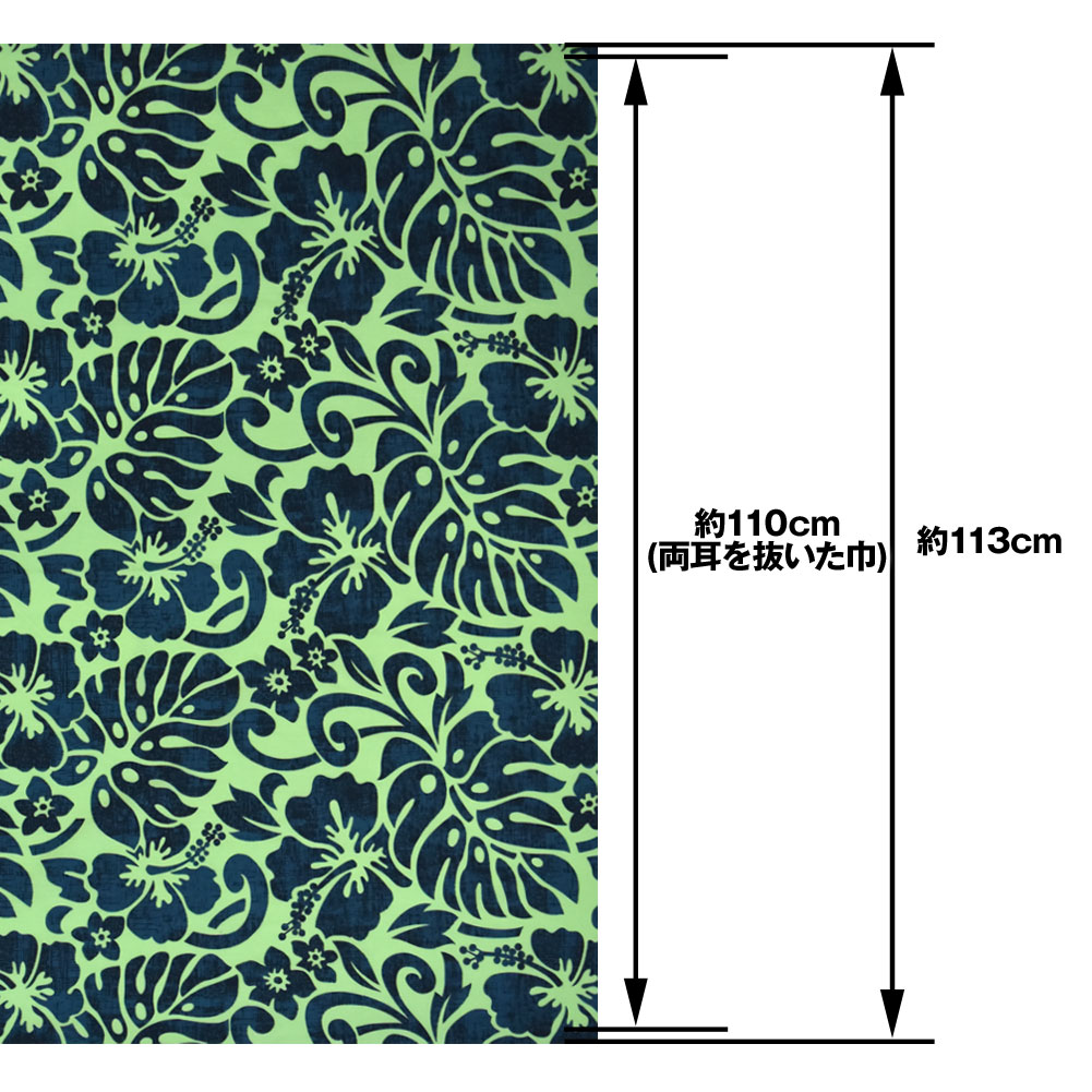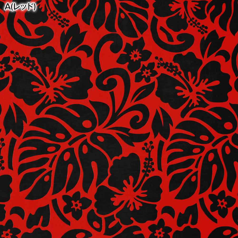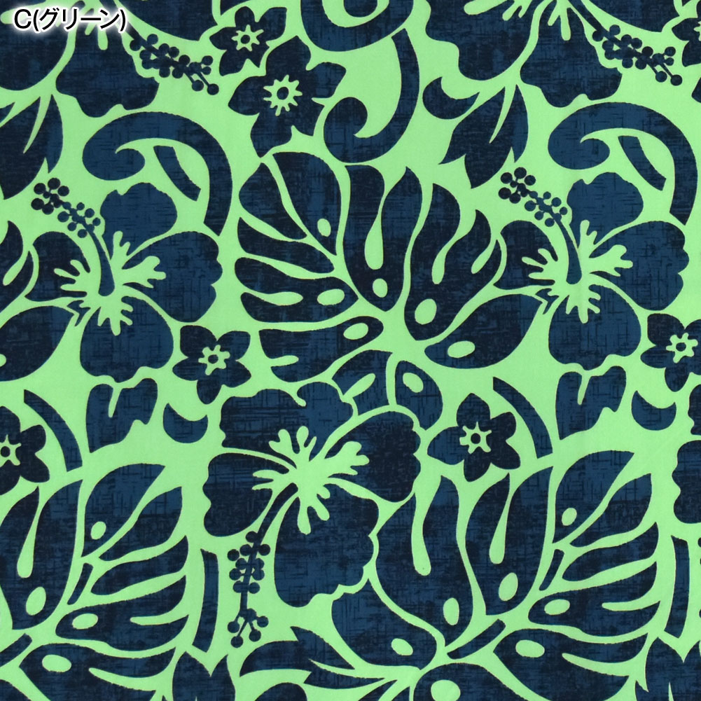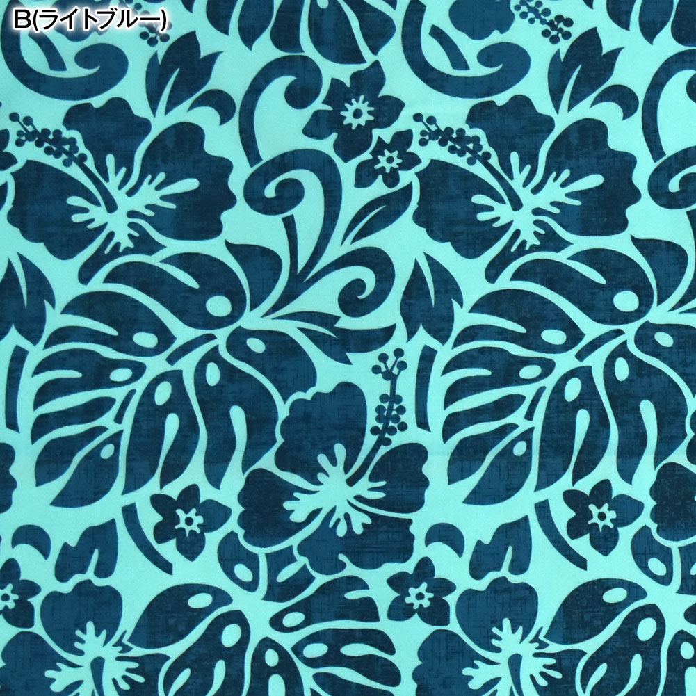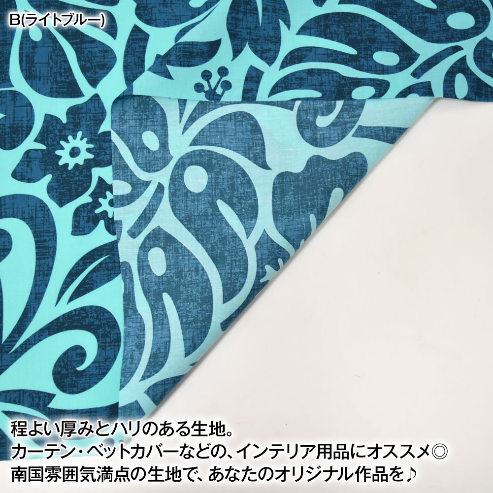 【アウトレット生地】生地 ハワイ柄 ハワイアン柄生地(約113cm巾x1mカット済) 布 柄 ハワイアンプリント生地 ハイビスカス モンステラ 葉 L100-35P17 [M便 1/2]