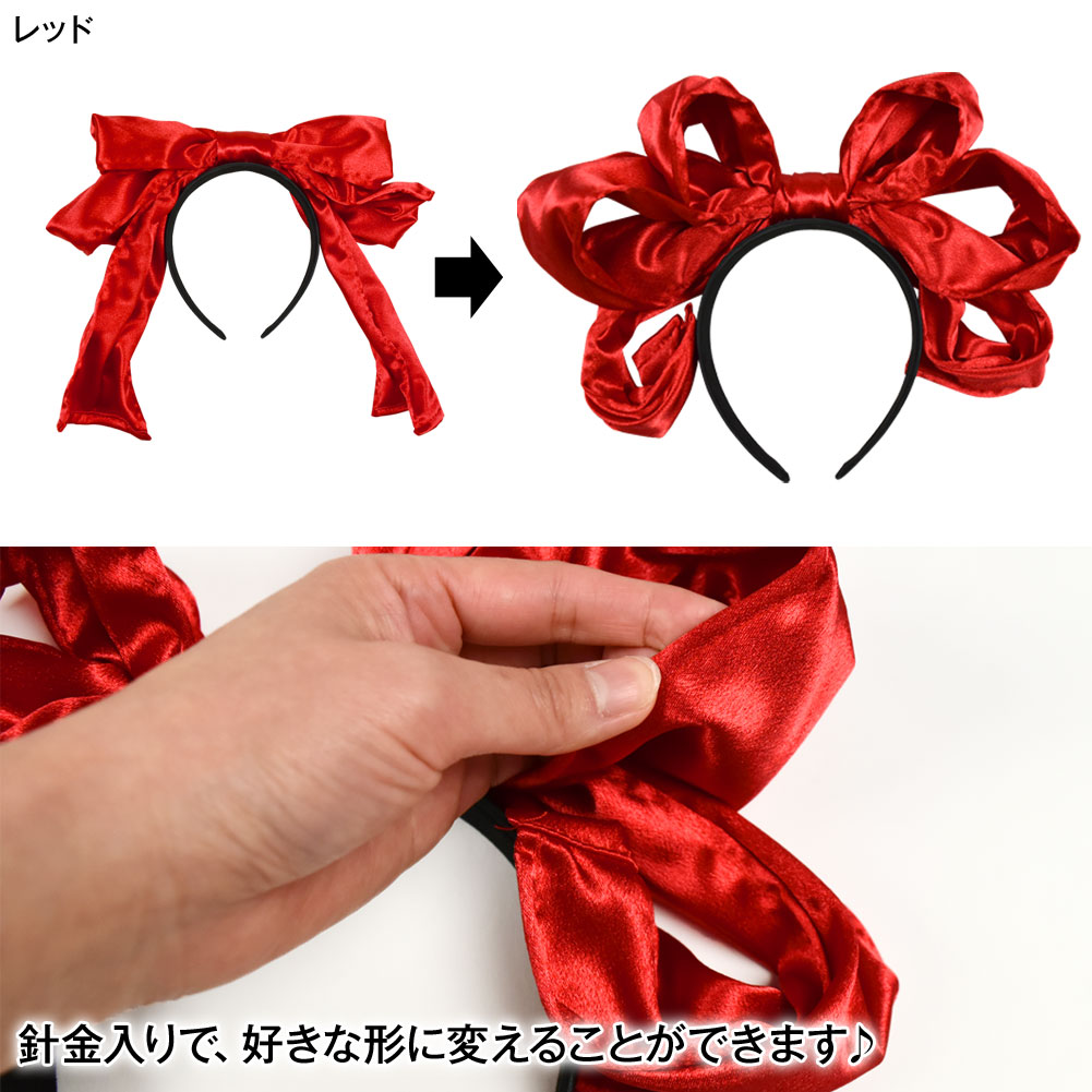 サテン 針金入り リボンカチューシャ ヘアアクセサリー カチューシャ 立体 無地 りぼん ヘッドアクセ ダンス衣装 コスプレ 髪飾り ヘアアレンジ S212Y28