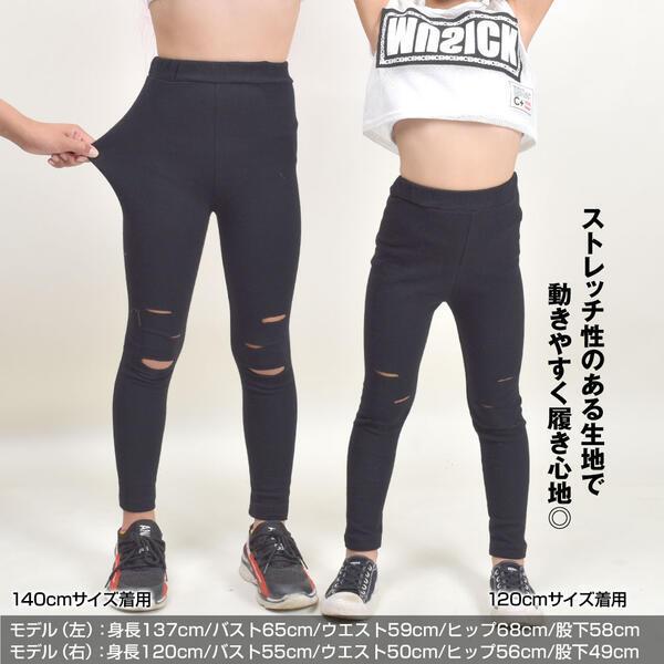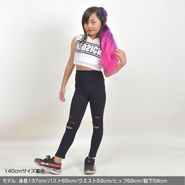 子供 キッズ ヒップホップ ダンス 衣装 パンツ レギンス ロング丈 タイト レギパン キッズ 伸縮素材 10分丈 ダメージ タイト ウエストゴム BD94271 [M便 1/2]