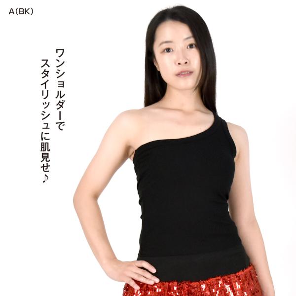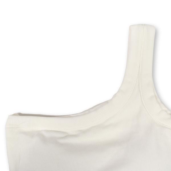 ワンショルダートップス カップ付き 一体型 ノンワイヤー リブ ワンショル フィットネス ヨガ ダンストップス/レディース/ストレッチ素材/黒 白/フリー EL59E02