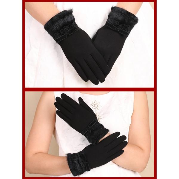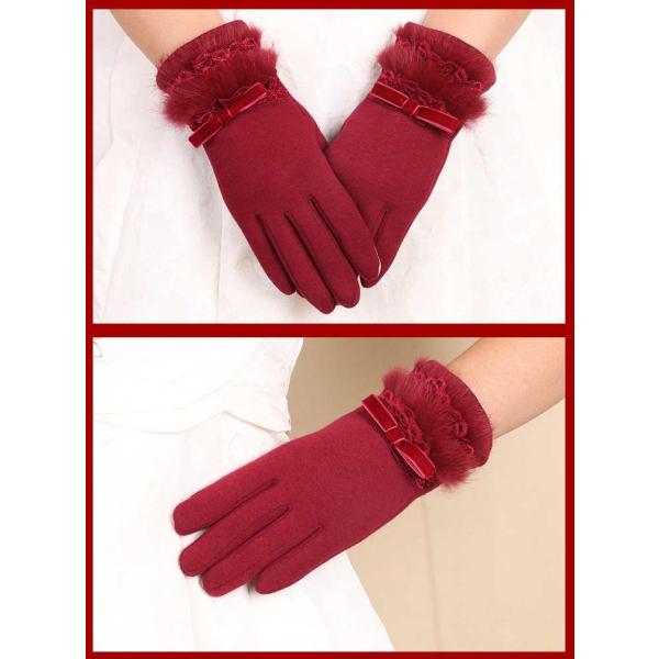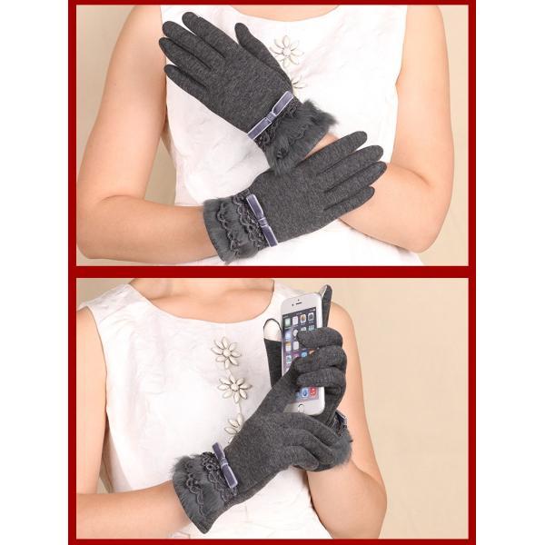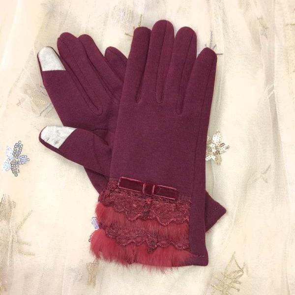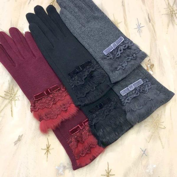 送料無料 手袋 リアルファー リボン タッチスクリーン レディース ウール グローブ 防寒対策 レース ギフト プレゼント 891103