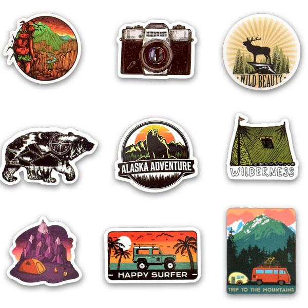 送料無料 ステッカー アウトドア 登山 ロゴ シール フレークシール コラージュ キャンプ 自然 野生 トレッキング ハイキング 900800