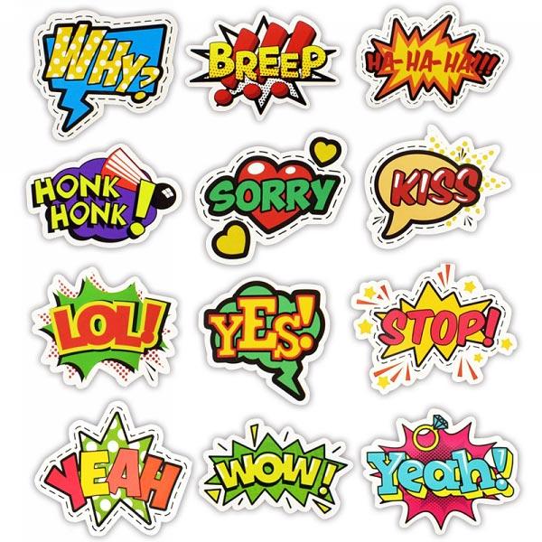 送料無料 ステッカー 吹き出し シール 漫画 フレークシール コラージュ デコレーション ポップ コミカル アメコミ メッセージ 900802