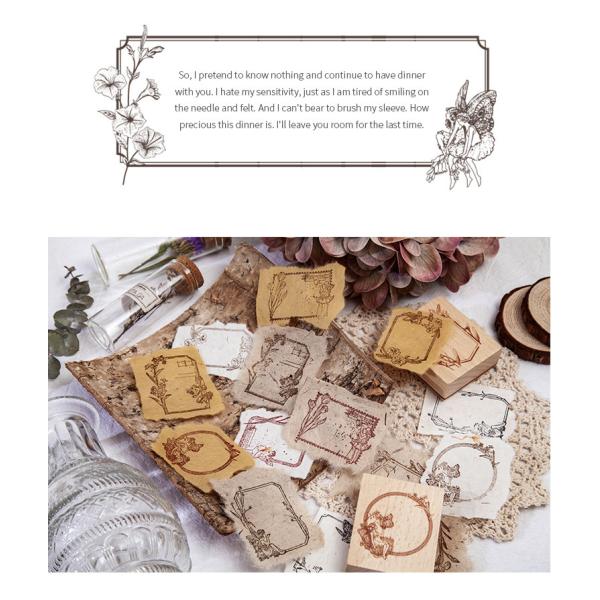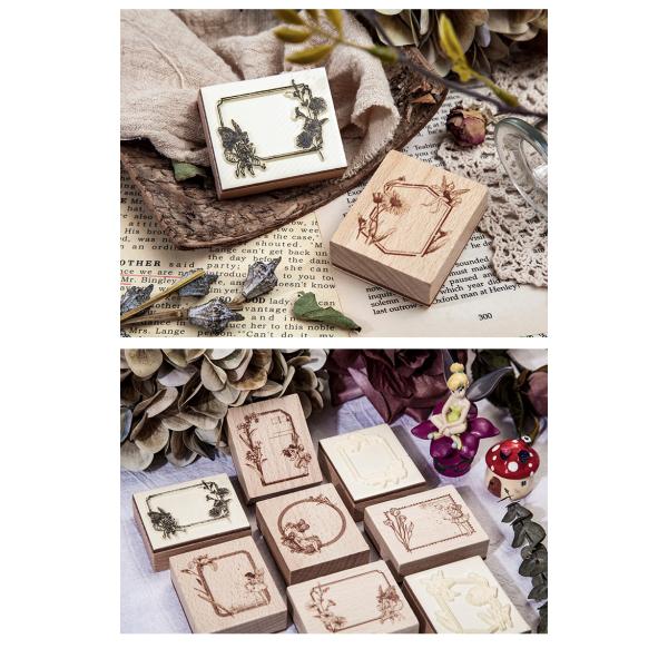 送料無料 アンティーク エルフ フレーム スタンプ フェアリー 植物 ヴィンテージ 判子 雑貨 クラフト 木製 ラッピング ゴム印 910606