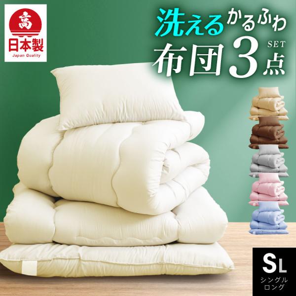 日本製 布団3点セット シングル ロング 洗える国産 日本製 布団セット ふとんセット 敷布団 掛け布団 枕 シングル 軽い 来客用 清潔