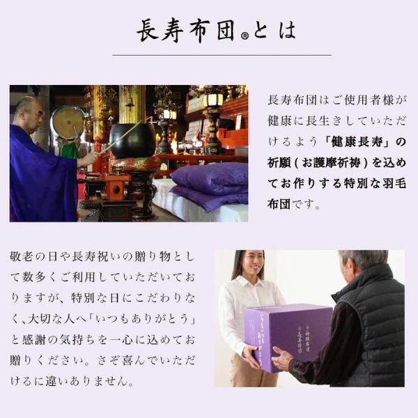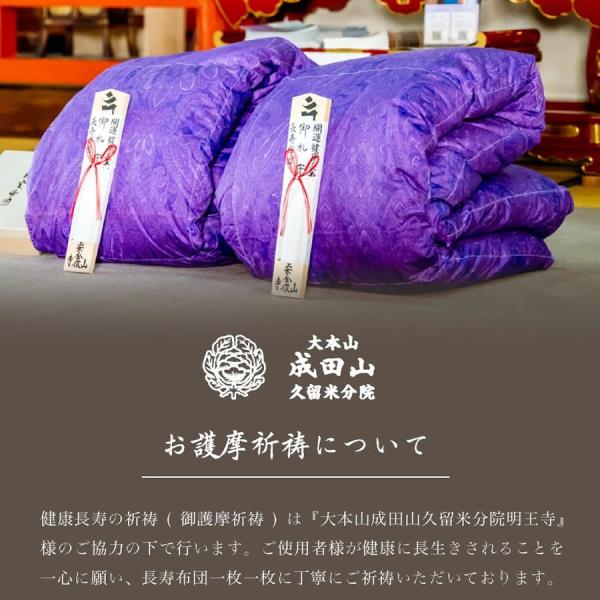 感謝を贈る羽毛布団 長寿布団 シングル 長寿祝い羽毛布団 シングル 羽毛掛け布団 還暦祝い 古希 喜寿 傘寿 米寿 卒寿 成田山久留米分院 健康長寿 祈願 羽毛布団 ギフト お祝い プレゼント 日本製 国産 成田山久留米分院にて健康長寿の祈願を込めて作る羽毛布団です。