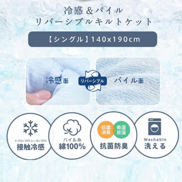 キルトケット 冷感&パイル リバーシブルひんやり 接触冷感 綿100%パイル キルトケット シングルひんやり 肌掛け布団 リバーシブル