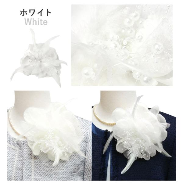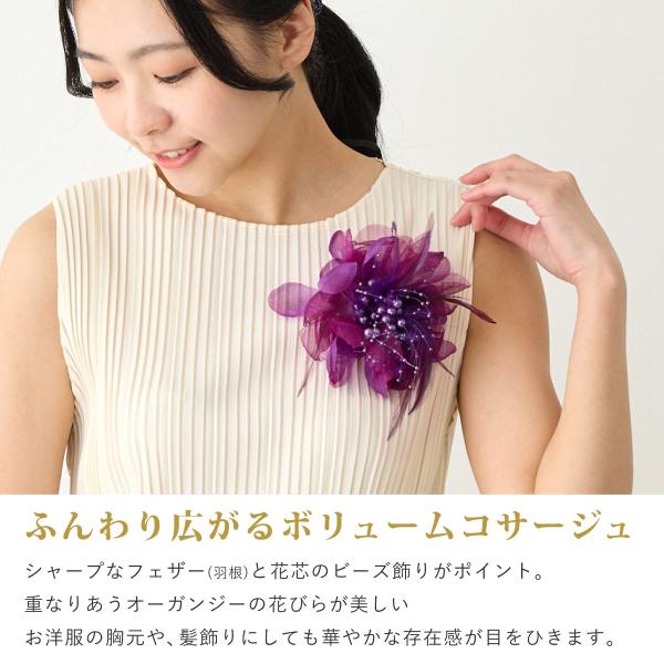 華やか 大きめ フェザーコサージュ オーガンジー 羽根&パールビーズ飾り 9e BIG レディース 入学式 卒業式 フォーマル スーツ 結婚式 発表会 ギフト