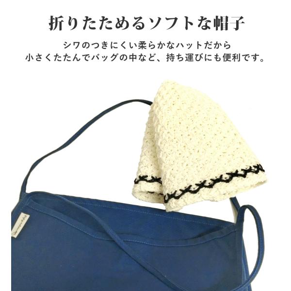 シワのつきにくい柔らかな帽子は小さく折り畳みも可能です。