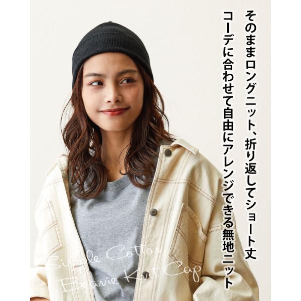 ニットキャップ コットン ニット帽 黒 ブラック ビーニー 春夏 綿 ぴったりフィット knit-1237-20 爆買