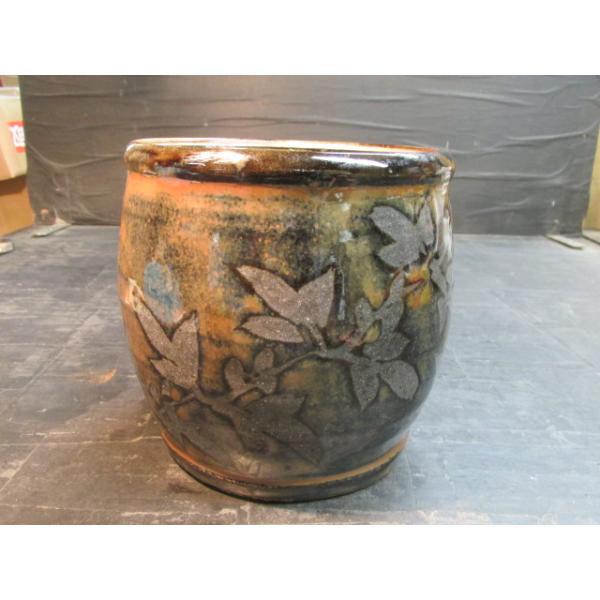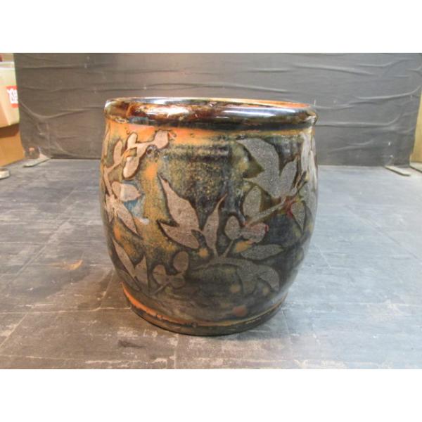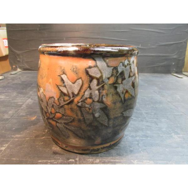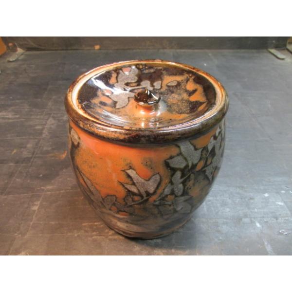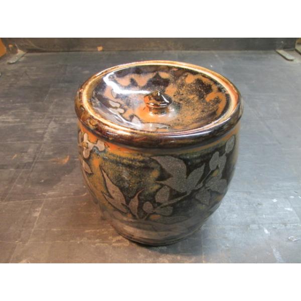 木村充 益子焼 柿釉 草文 水指 茶道具 茶道具 共箱 茶器 陶器 陶芸 作家 現代感覚 目立った傷や汚れなし