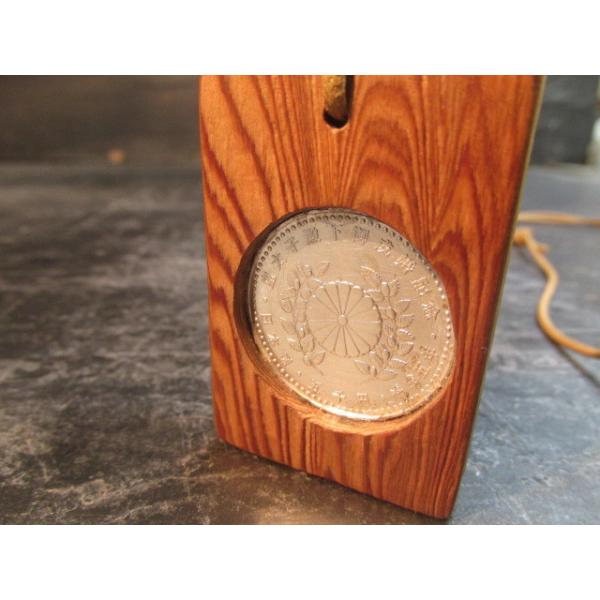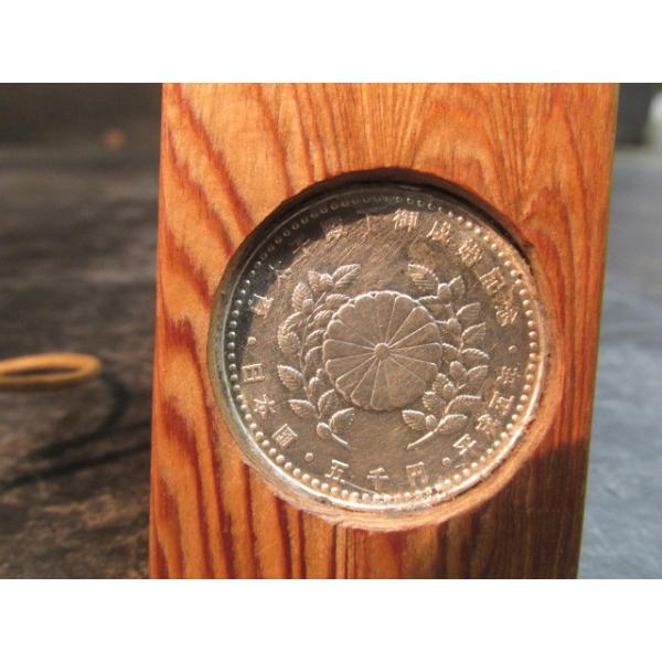 です。木目の美しい屋久杉を使って銀貨の周りを