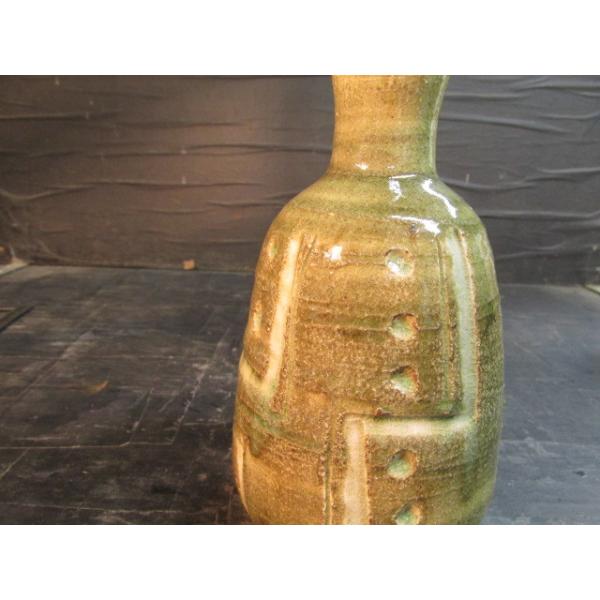 この壺は斬新的な幾何学模様を壺の表面に彫り、